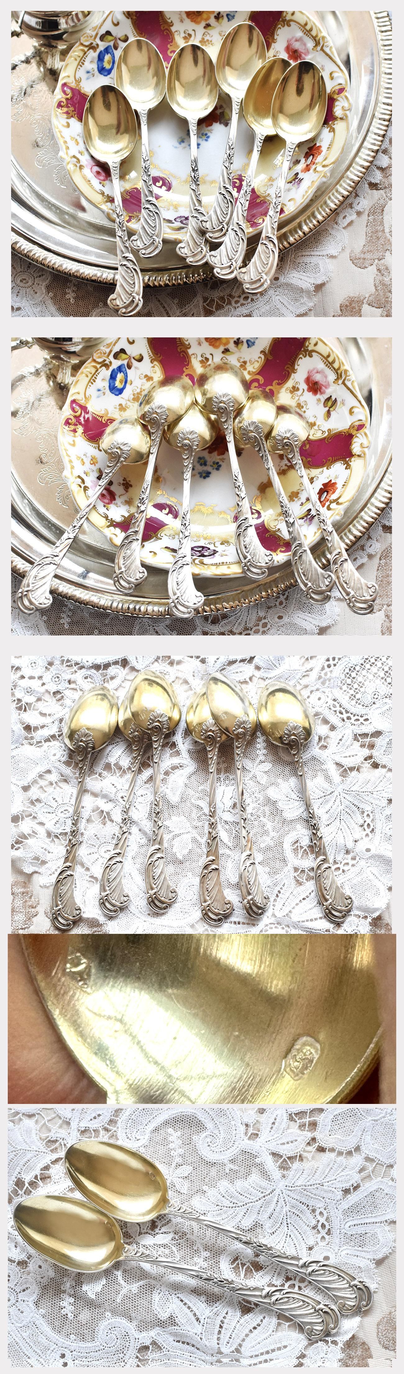 フレンチアンティーク銀器【銀950】Odiot ティースプーン6本セット 167g